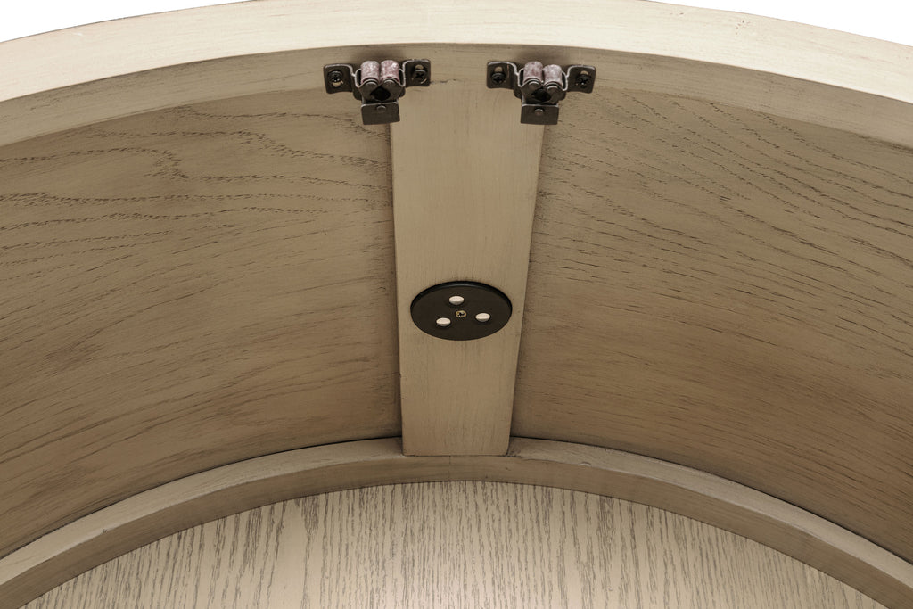 Elevate your space with this sophisticated vitrine cabinet, designed to showcase your most treasured items with style. Featuring two wood-framed tempered glass doors, the upper section offers four tiers of shelving, perfect for displaying decor, dinnerware, or collectibles. The lower section of the cabinet provides additional storage with two hand-woven cane doors and a shelf inside for hidden organization. Crafted from solid wood, engineered wood, and oak veneer, this display cabinet offers both open display and concealed storage options. Its timeless arched design and natural wood finish make it a perfect addition to dining rooms, living spaces, or home offices. Key Features: • Elegant beige oak vitrine cabinet with arched design and wood-framed tempered glass doors • Four tiers of shelving in the upper section for showcasing decor or dinnerware • Lower two-door cabinet with a shelf for concealed storage • Crafted from solid wood, engineered wood, and oak veneer for durability • Hand-woven cane doors in the lower section add a natural, artisanal touch