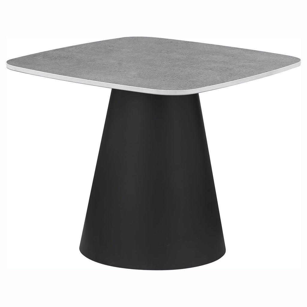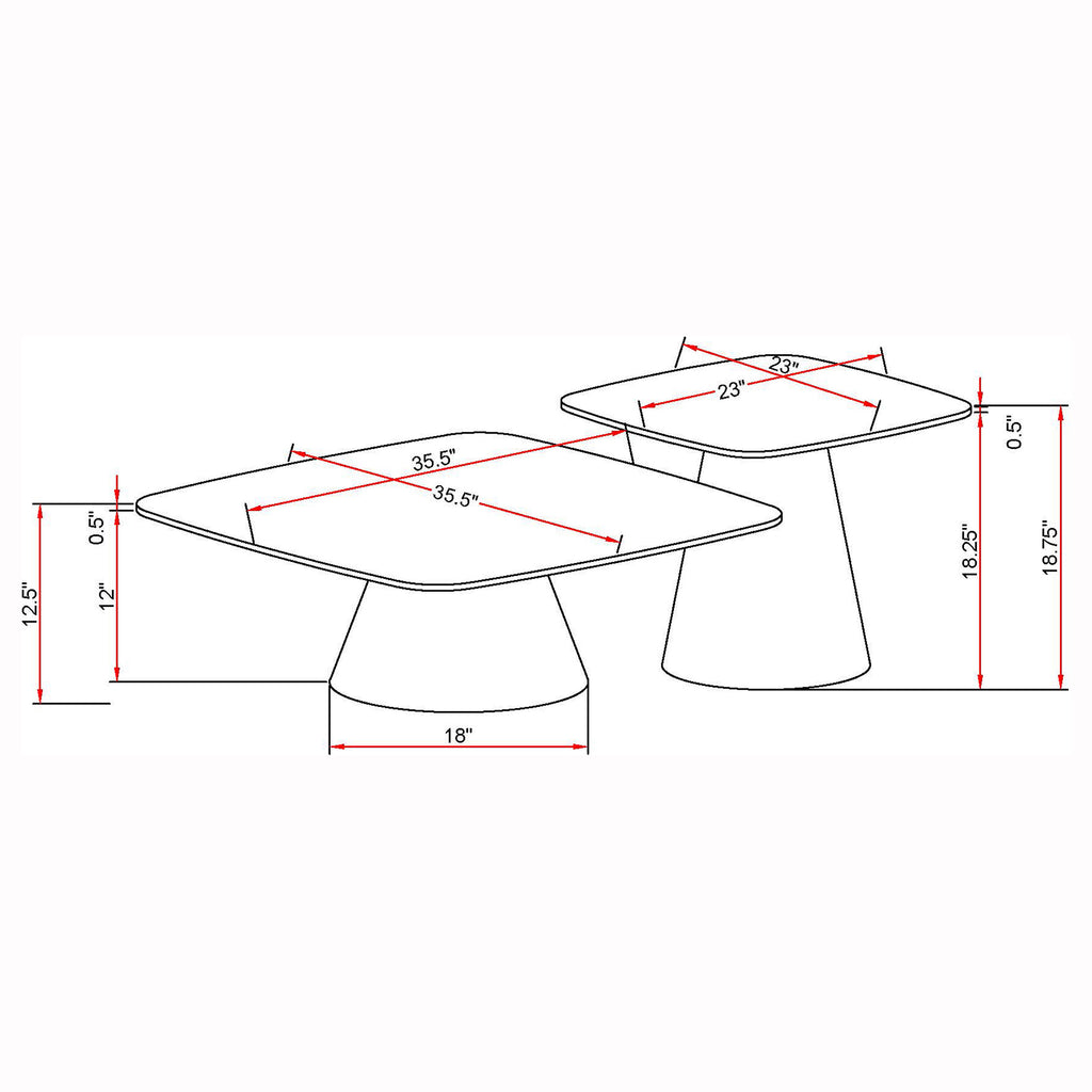 Refresh the style of your contemporary or vintage inspired living space with a set of two coffee tables. They pair perfectly, creating a waterfall effect with the smaller square table just a bit taller than the larger table. Each boasts a warm walnut finish tabletop with rounded corners that soften the overall look. Each table stands on a conical base with a black finish, creating contrast and dimension while providing stability and structure. The tables are a striking presentation together but look equally great apart in a compact den or living room. Key Features: • A modern two-piece coffee table set creates a fresh, refined look and feel in your living room • Conical bases feature a black finish, creating depth and dimensionality with differing heights • Tabletops are square, with rounded corners to soften the waterfall effect of the tables • A warm and inviting walnut wood grain finish adds texture in an organic presentation • These tables can be used together or apart, creating easy versatility in your space