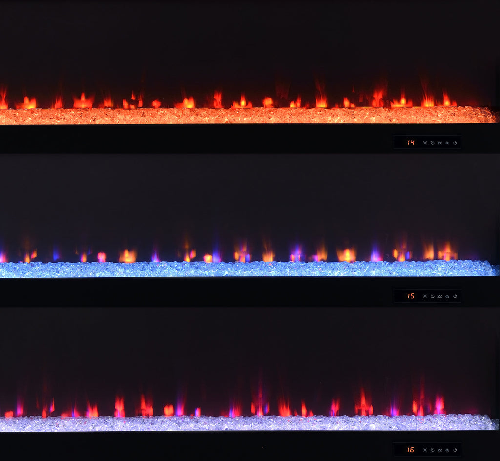 Flickering firelight glows behind glass, casting warmth and ambiance in perfect harmony. This media console fuses utility and romance, with slatted cabinet doors and an electric fireplace that offers visual charm without a heat function. Its dark pine finish anchors the space with rustic elegance, while generous surface and storage support your modern lifestyle. Whether used as a TV stand, media console, or hearth-inspired cabinet, it invites connection in every season. Key Features: • TV stand with electric flame visualizer insert adds warmth and function to any living room space • Dark pine finish enhances the rustic look with rich wood-inspired character • Slatted side doors open to reveal adjustable shelves for concealed media storage • Fireplace without heat function and features 15 flame color options for ambiance • Crafted from engineered wood, honeycomb board, clear glass, and laminate veneer • Black hardware accents offer contrast and modern styling to the wood-look cabinet