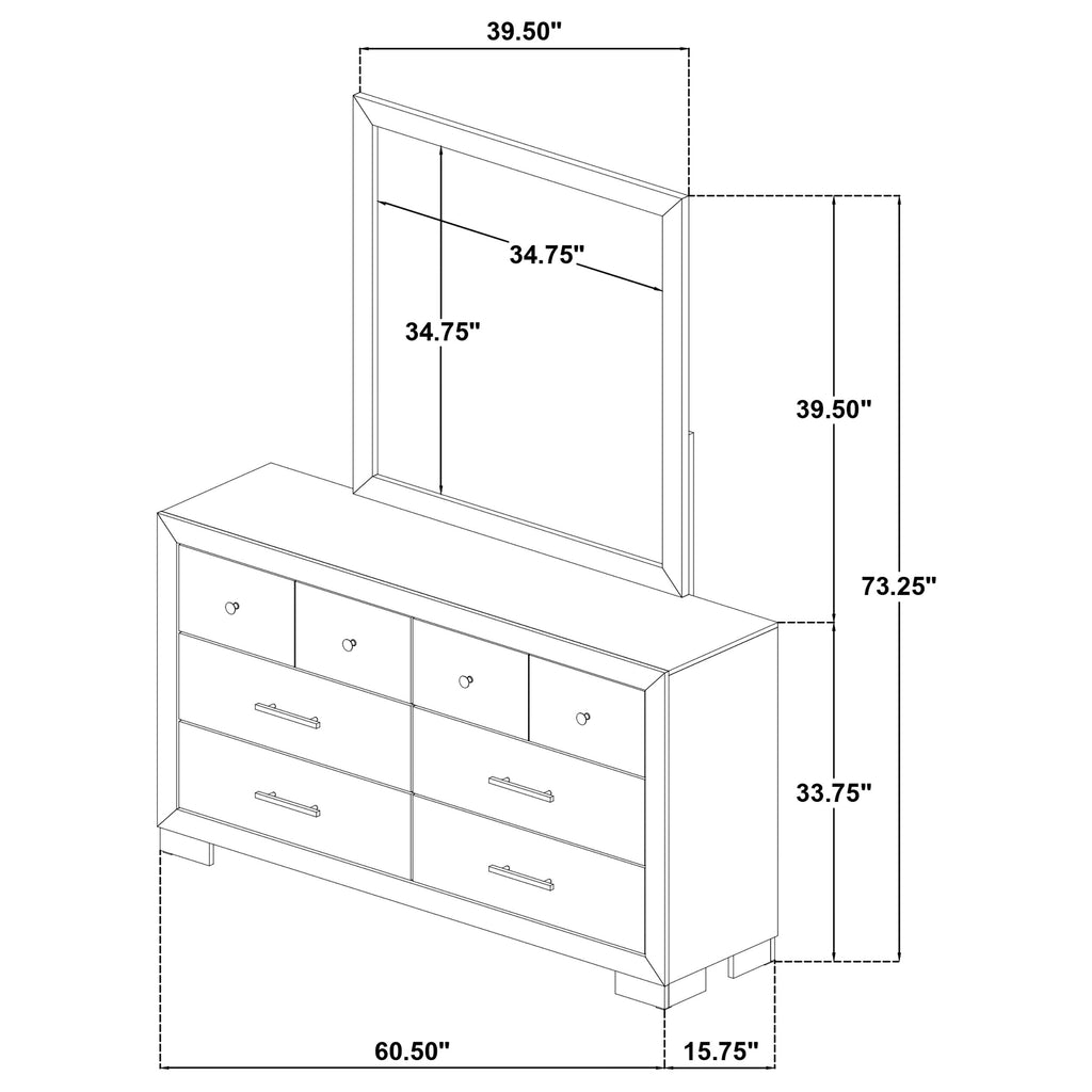 Effortlessly elegant, this six-drawer dresser with mirror lends a serene charm to any bedroom. Framed in a soft light oak finish, its clean lines are paired with antique nickel hardware for a touch of refinement. Built from engineered wood with a scratch-resistant laminate veneer, it’s made for lasting beauty. Six English dovetail drawers glide smoothly on metal extension glides, while the matching mirror completes the ensemble with timeless simplicity. Key Features: • Six-drawer dresser with mirror in light oak finish and clean, modern rectangular form • Antique nickel hardware adds contrast and elegance to each drawer face • All drawers feature English dovetail joinery for added strength and durability • Smooth 35mm metal extension glides ensure easy, full-access drawer function • Crafted from engineered wood with a scratch-resistant laminate veneer surface • Framed rectangular mirror pairs beautifully with the dresser’s streamlined silhouette