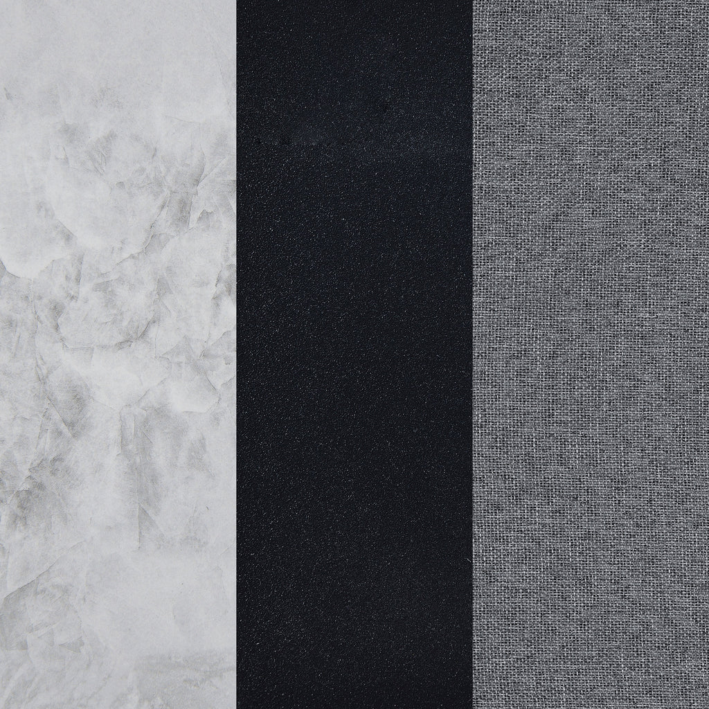 Bring approachable contemporary style to your kitchen or dining room with this five-piece dining set. It centers on a rectangular table that pairs tapering, splayed metal tube legs with a marbled look to its table top. The grey and sandy black combination is enhanced with matching side chairs. Each boasts a grey bucket-style seat for comfortable seating. This modern set offers a light, airy ambiance, perfect for an eat-in kitchen or breakfast nook.