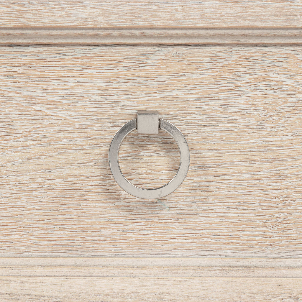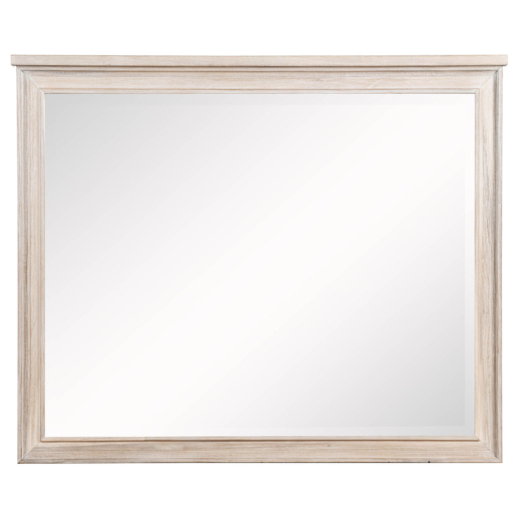 Rooted in tradition and softened by coastal charm, this bedroom set brings timeless grace to every corner of the room. Washed oak frames each piece in warmth and natural texture, while subtle molding and polished ring pulls lend a refined touch. Cream fabric and gentle curves add softness where needed, while hidden conveniences like cable access and smooth glides speak to thoughtful design. Crafted from oak veneer, poplar, and engineered wood, the set offers a serene blend of beauty and utility. Key Features: • Bedroom set with classic paneling and clean lines for timeless structure and ease • Washed oak finish highlights natural wood grain with soft coastal-inspired tones • Cream upholstery and nailhead trim add refined softness to select pieces • Felt-lined drawers and cable access offer elevated storage convenience • Polished nickel ring pulls complete the look with a subtle, gleaming accent • Crafted from poplar, engineered wood, oak veneer, and fabric for enduring charm