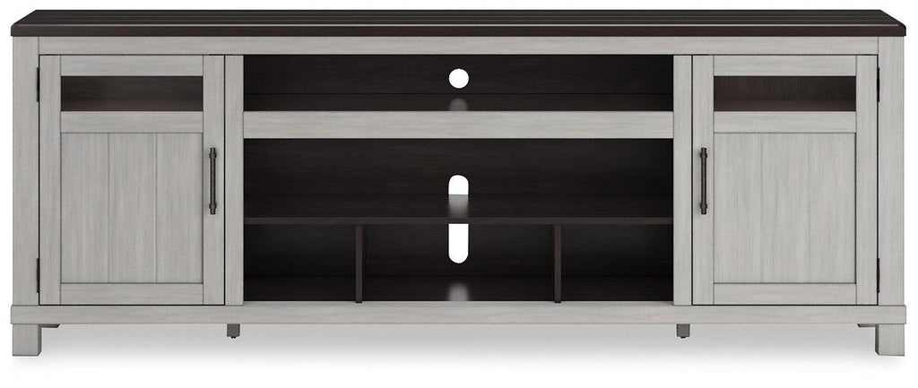 Make a farmhouse-inspired statement with this TV stand. It’s beautifully crafted to stand the test of time, with a planked effect and clean two-tone finish that lend a relaxing vintage feel. With two cabinets (each with an adjustable shelf) and an open cubby, it offers plenty of storage to house all your electronic needs. Enhancing the experience, the fireplace insert brings a touch of warmth and beautiful ambiance to your living room. With the touch of a button, adjust the temperature and the flame brightness, and connect your device to the built-in wireless speakers. The flame effect includes a realistic-looking log set with glowing embers, along with an ambient down light.